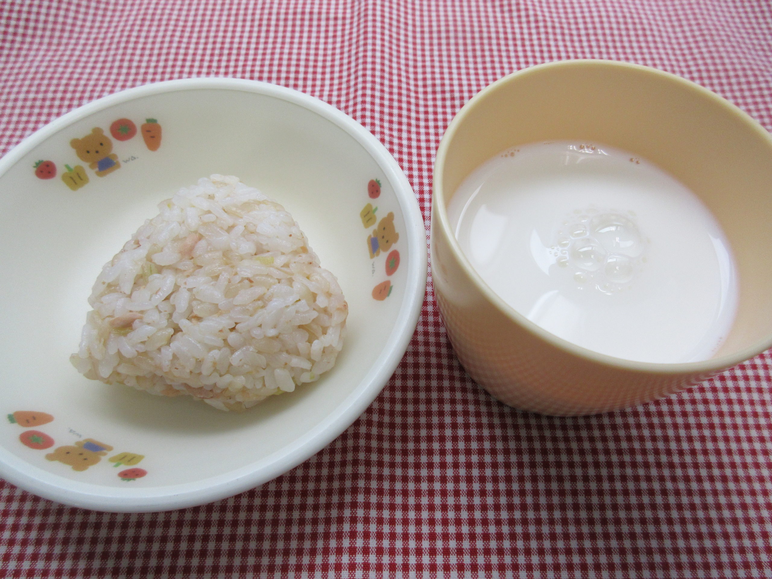 3月2日(月)幼児食おやつ:牛乳、梅ツナおにぎり
