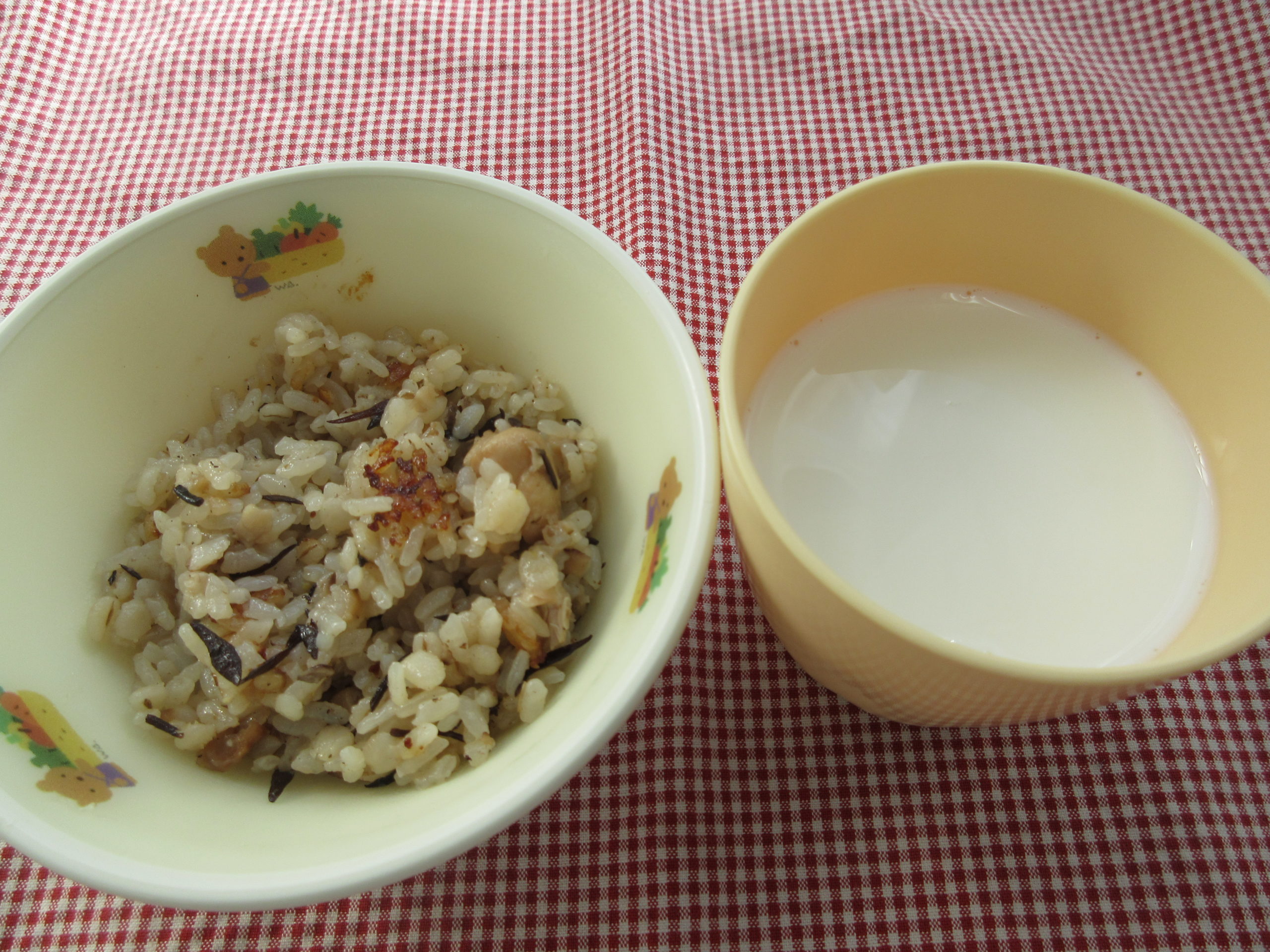 3月4日(水)幼児食おやつ:牛乳、中華風炊き込みごはん