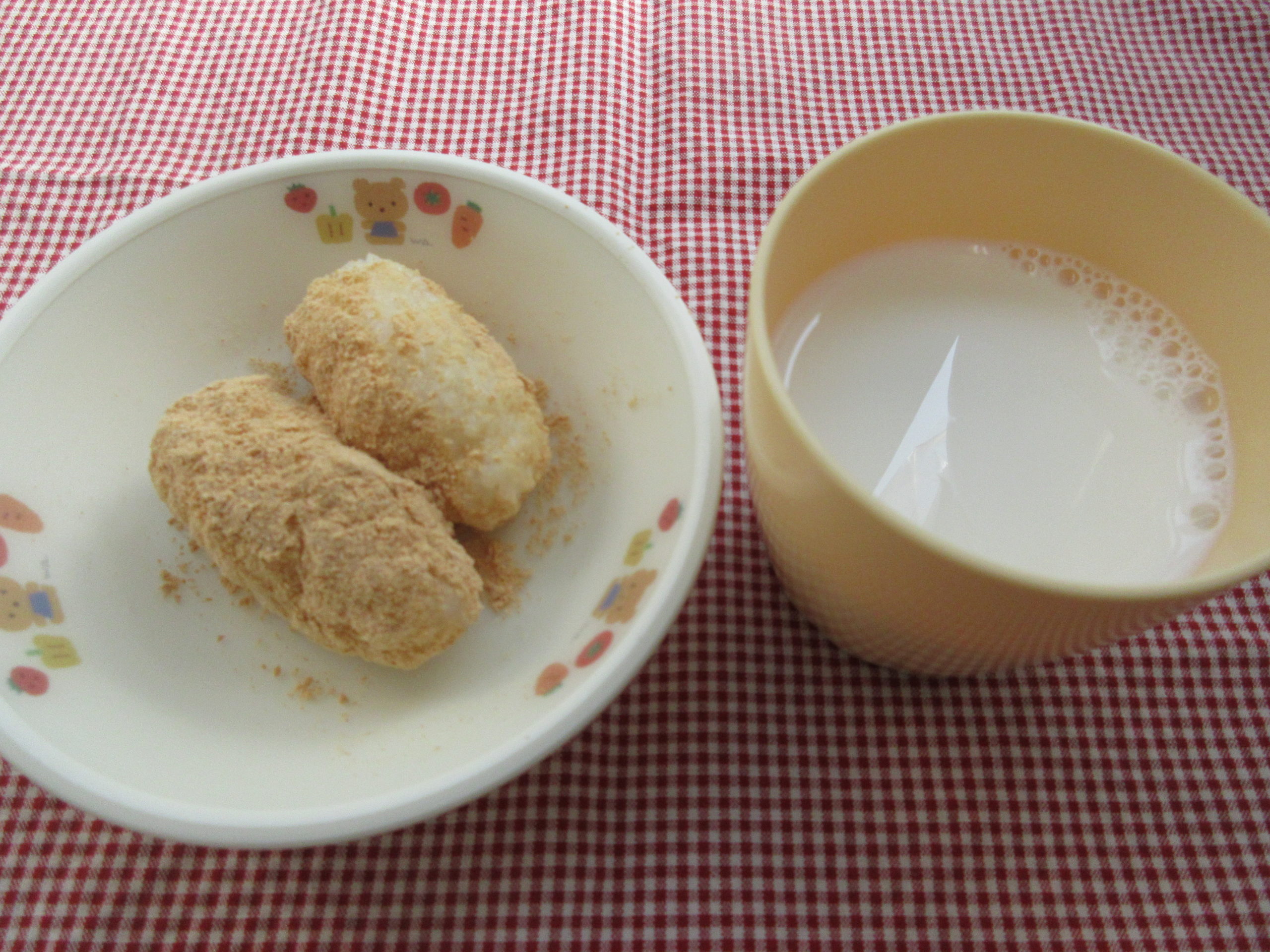 3月23日(月)幼児食おやつ:牛乳、きな粉ぼたもち